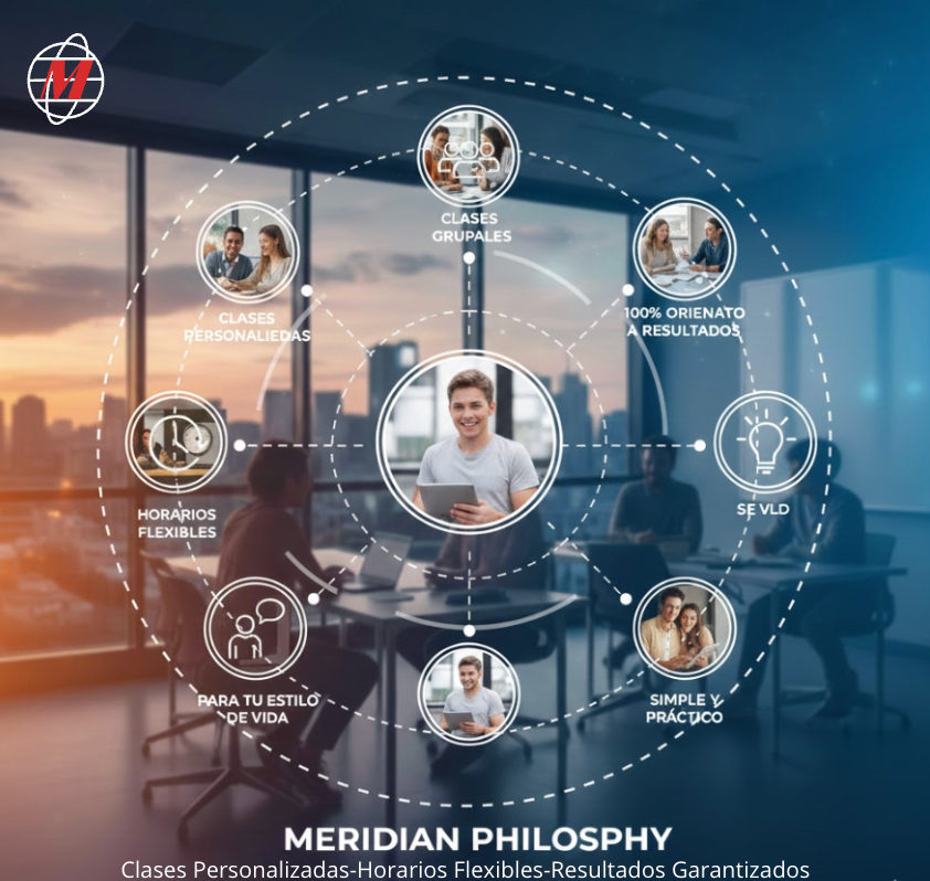 Nos adaptamos a ti con clases personalizadas, grupales y horarios flexibles diseƱados para tu estilo de vida. En Meridian aprender inglƩs es simple, prƔctico y 100% orientado a resultados.